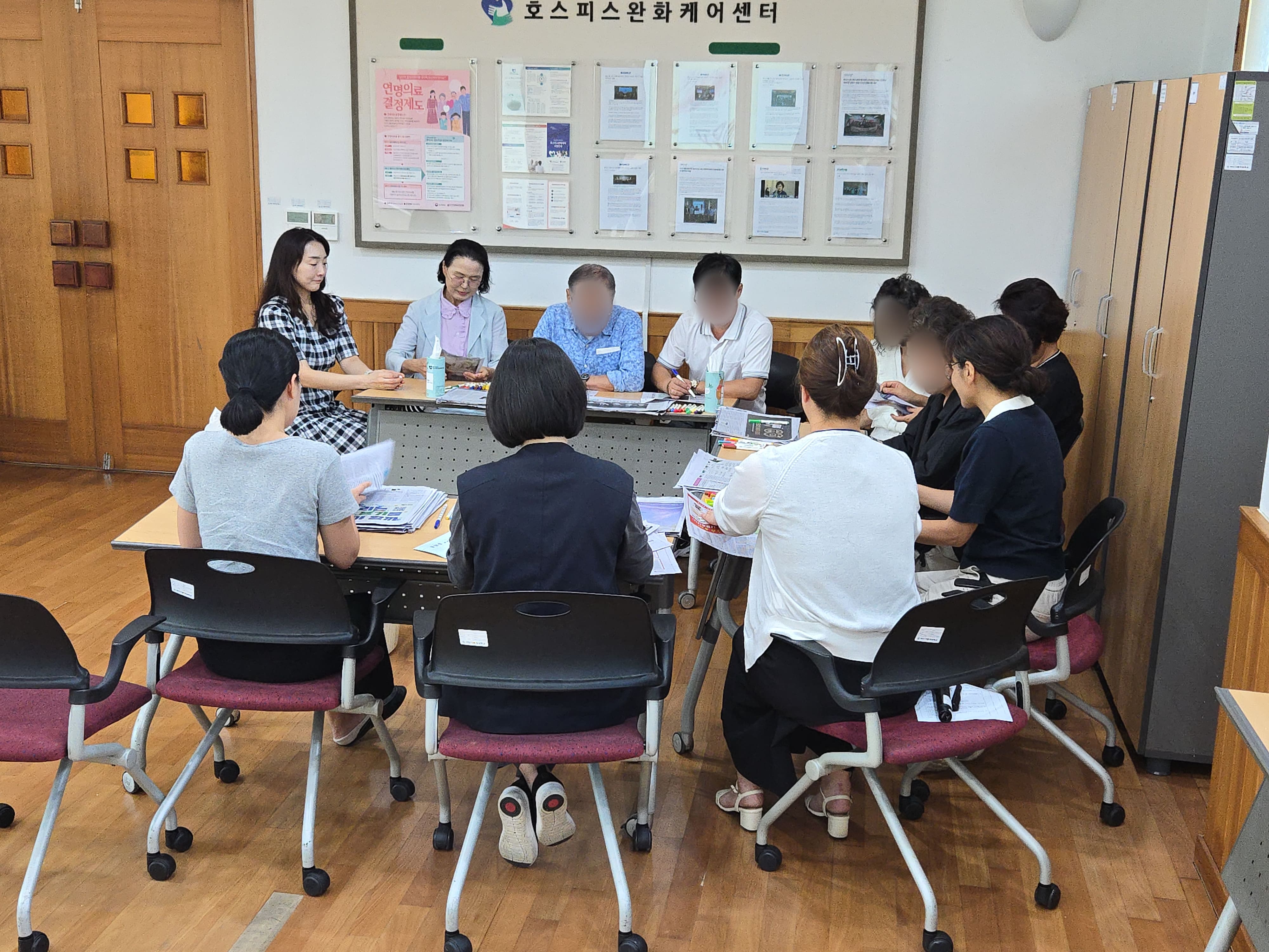2025년 9월 26일(금), 부산광역시 호스피스완화케어센터 2층 프로그램실에서 사별가족을 대상으로 ‘상실 후 고통과 위로’를 주제로 한 집중프로그램 ‘옹달샘’을 진행하였습니다. 오전에는 상실의 과정과 마음 치유를 위한 시간을, 오후에는 ‘그리운 당신께’ 편지 쓰기와 캘리그라피 액자 만들기 활동으로 따뜻한 위로를 나누었습니다.